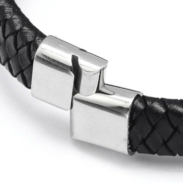 Onze luxe herenarmband heeft een sterke zilverkleurige roestvrijstalen sluiting en is gemaakt van gevlochten imitatieleer. Dit moderne ontwerp is geschikt voor een man of tienerjongen en perfect als speciaal cadeau voor Vaderdag.