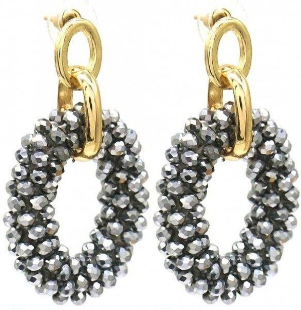 Voeg een vleugje glamour toe aan elke outfit met deze prachtige oorbellen! De combinatie van sprankelende witte kralen en gouden accenten maken ze perfect voor elke gelegenheid.