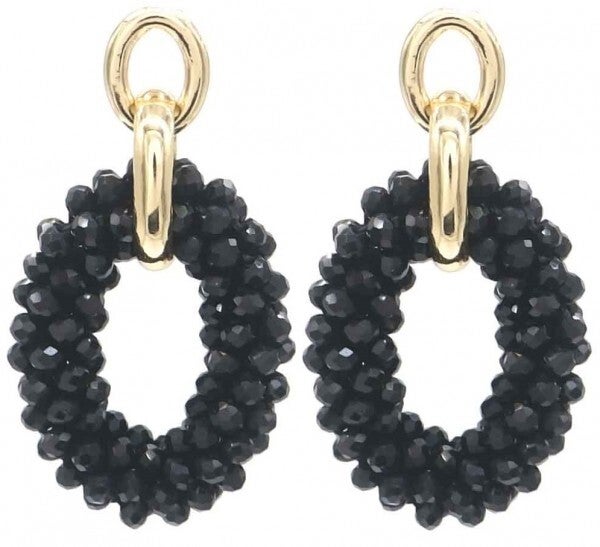 Voeg een vleugje glamour toe aan elke outfit met deze prachtige oorbellen! De combinatie van sprankelende zwarte kralen en gouden accenten maken ze perfect voor elke gelegenheid.