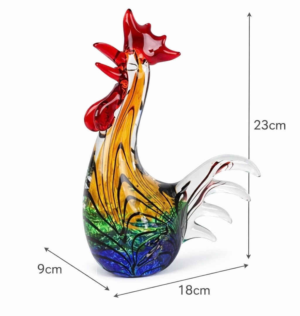 Glazen Sculptuur Haan – Kleurrijk Design | 18 x 9 x 23 cm
